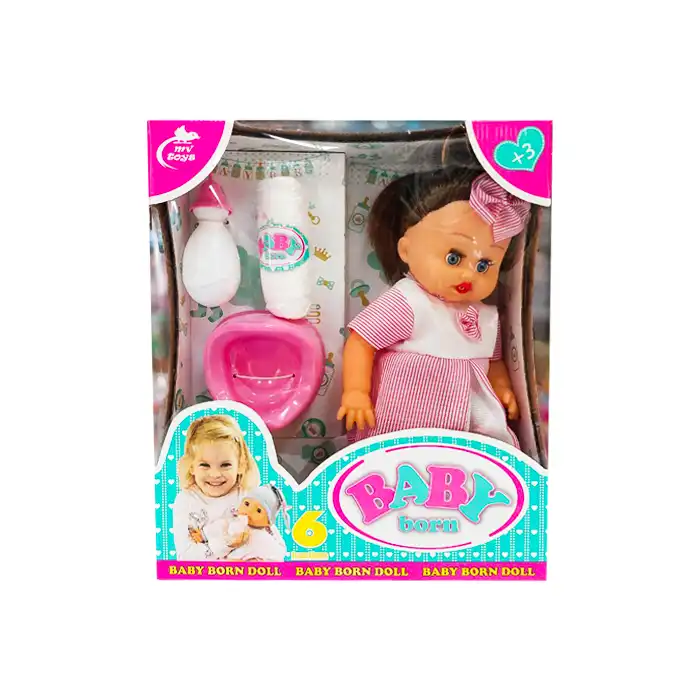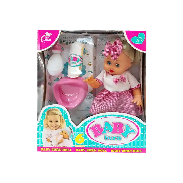 این عروسک دارای طرح نوزاد است و جنس دست و صورت آن گوشتی می باشد، یعنی با فشار دست فرو می رود.