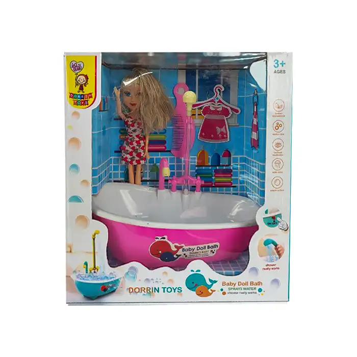 این محصول یک وان باطری خور با قابلیت اسپری آب از دوش حمام، یک عروسک باربی مفصلی با طول قد 28 سانتیمترهمراه شانه است.