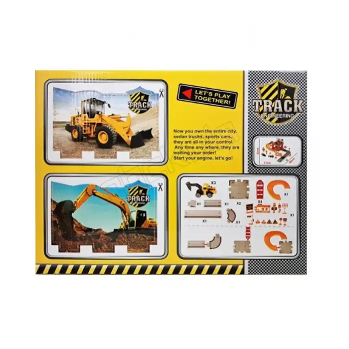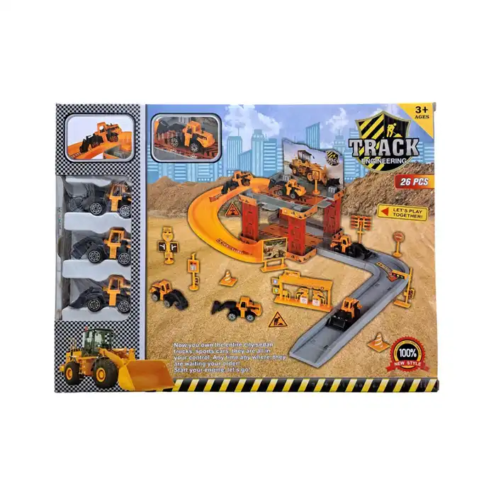 پارکینگ راه سازی کوچک شامل 26 قطعه مختلف از جمله 1 لودر، 2 بیل مکانیکی، یک پمپ بنزین، یک بیلبورد، قطعات جاده و علائم و چراغ های راه می باشد. کودکان می توانند با استفاده از این اسباب بازی ساعت ها به بازی و تلاش برای ساخت راه های مختلف مشغول شوند.